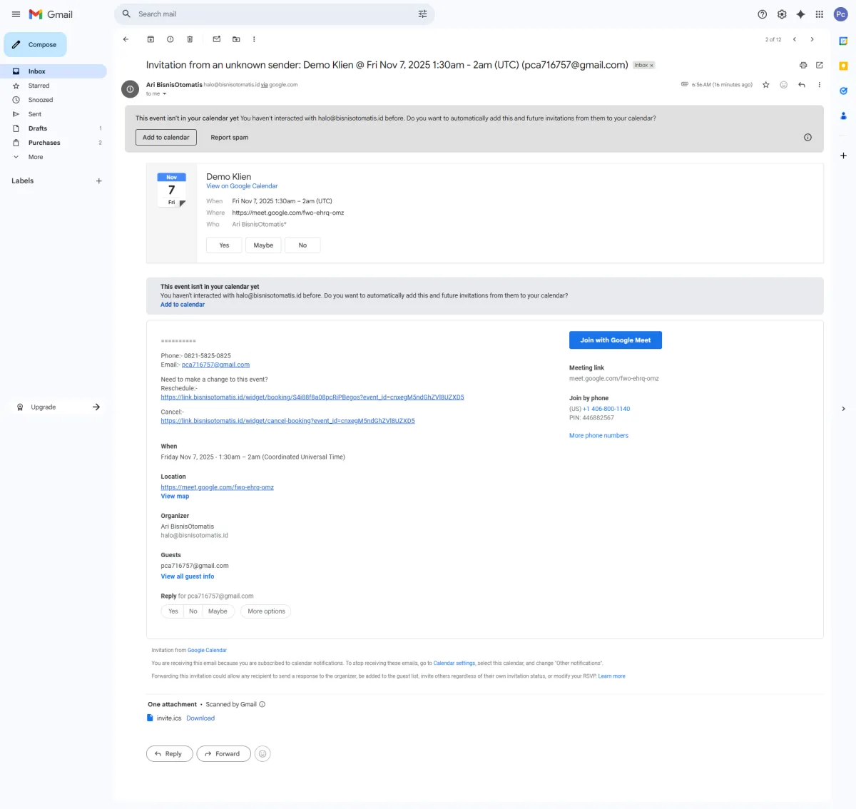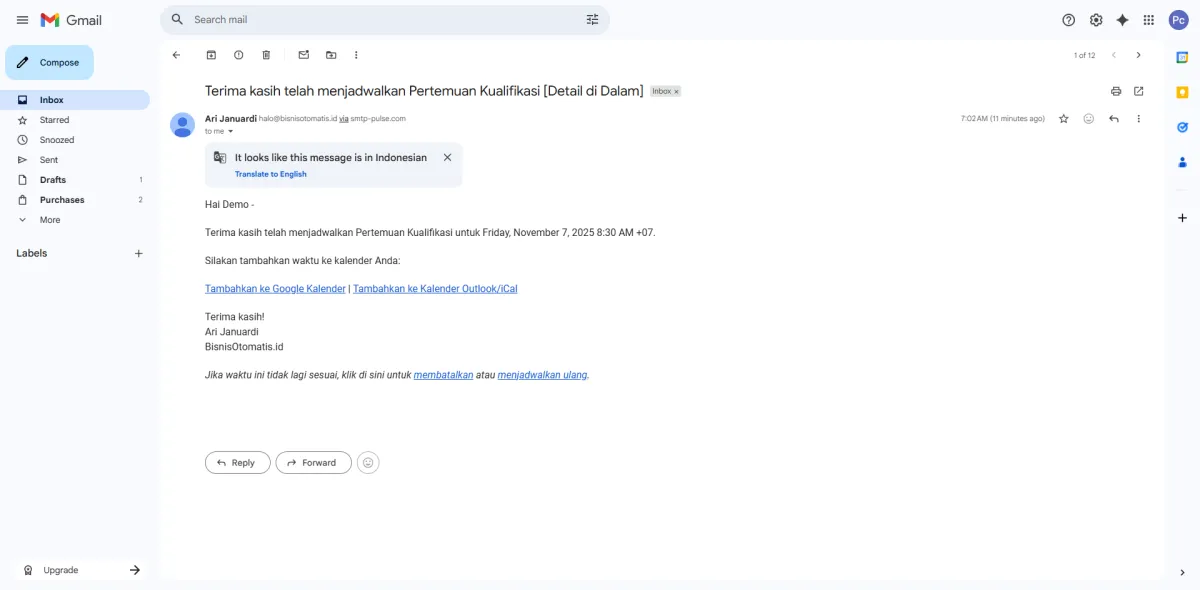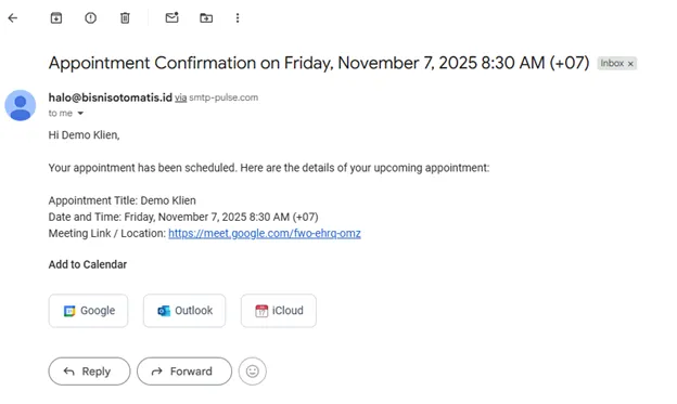 Live demo BisnisOtomatis.id: WA/IG inbox terpadu, auto‑follow‑up, booking & review.